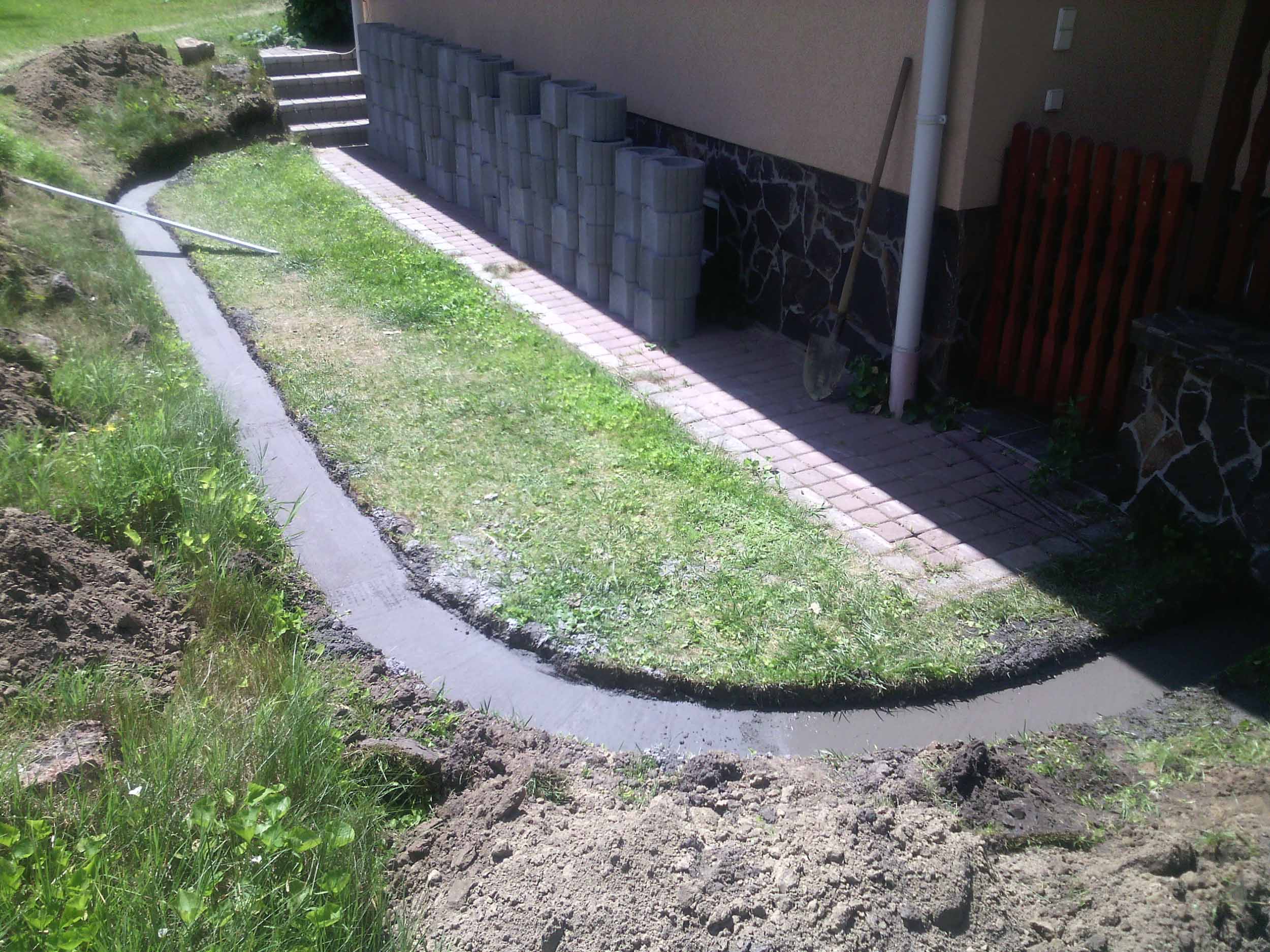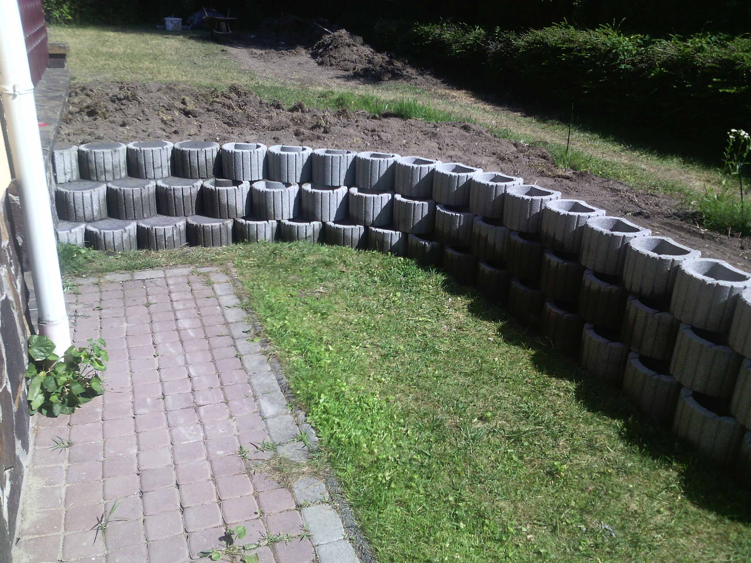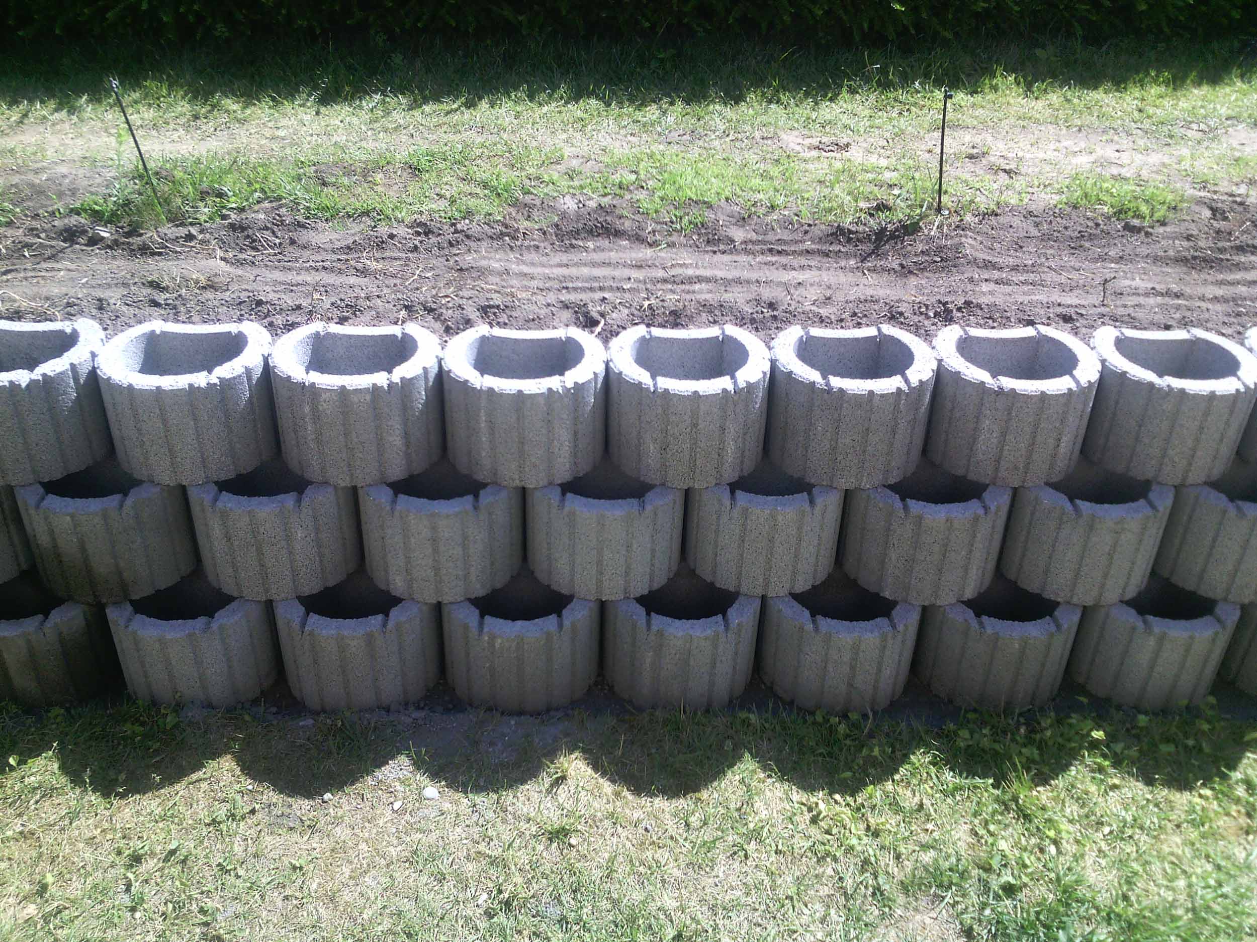 Építés: – földkitermelés alapból, – sávalap betonozás, – beton elemek felrakása, – földfeltöltés.