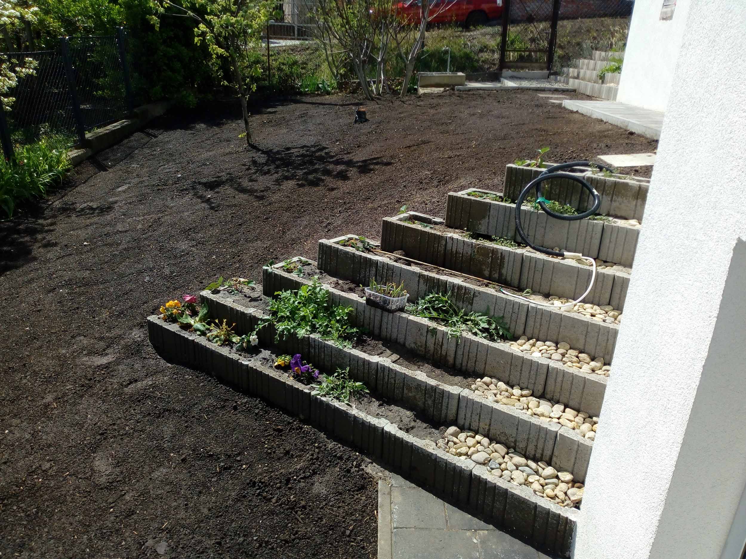 Növénytámfal építése betonelemekből
